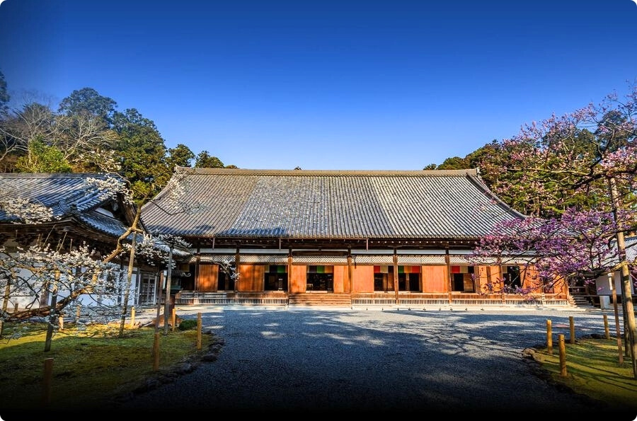 秋季時分,參道兩側的楓樹轉紅,與古老的寺院建築相映成趣,營造出莊嚴而美麗的氛圍。漫步其中,彷彿穿越時空,感受平安時代的文化底蘊與佛教藝術的輝煌。