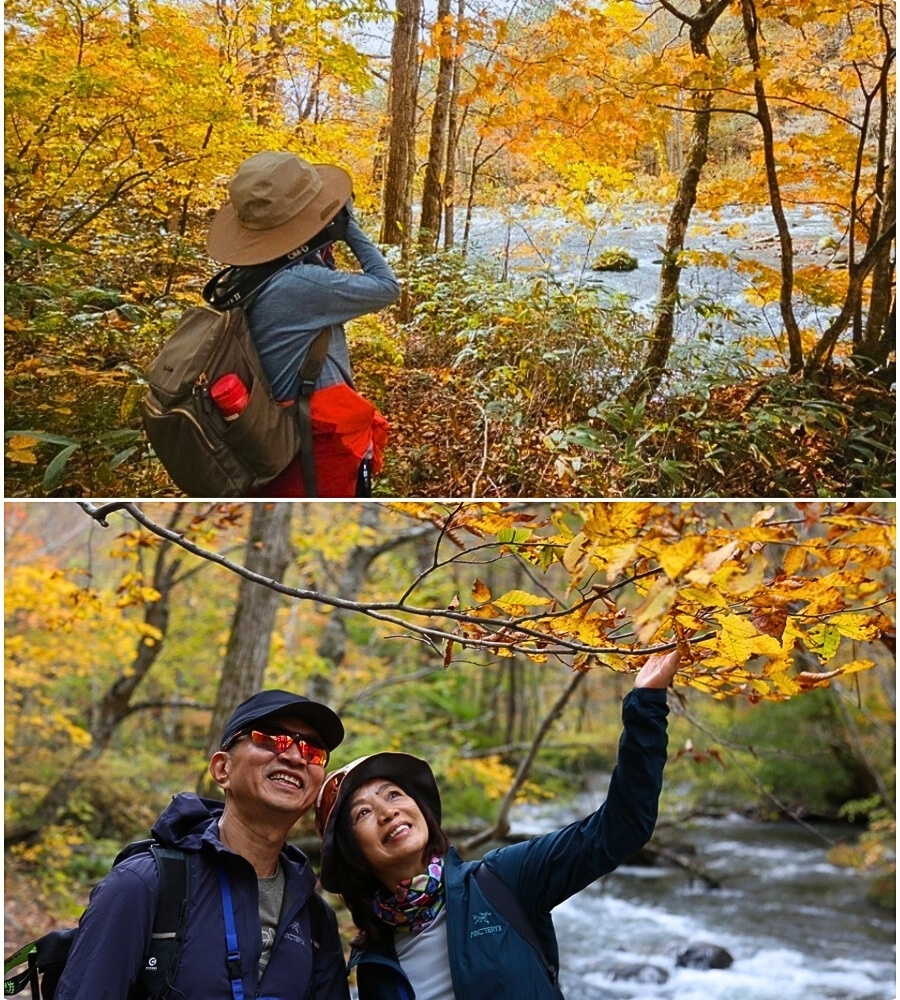 【奧入瀨溪全程健行】從十和田湖子之口流出的奧入瀨溪,全長約14公里,是日本最美溪流之一,也是本行程的重點體驗活動。溪谷沿著原始森林蜿蜒而下,兩岸被山毛櫸、楓樹、櫸樹、栗樹等多種闊葉林覆蓋,形成濃密的綠色隧道。秋季時節,整片森林轉為紅、橙、黃等繽紛色彩,層層疊疊如同天然調色盤,色彩斑斕如夢似幻。陽光穿透樹梢灑落溪谷,光影變幻,美得令人屏息。