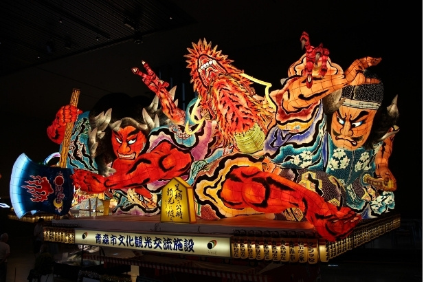 【青森睡魔博物館】館內展示青森睡魔祭的巨型燈籠花車,高達五公尺的藝術作品以日本神話、歷史人物為主題,運用鐵絲骨架與和紙製作,色彩鮮豔奔放。透過聲光效果重現祭典熱鬧氛圍,太鼓聲響徹館內,讓遊客彷彿置身於每年八月的睡魔祭現場,感受東北三大祭典之一的魅力,了解青森獨特的傳統文化與職人精神。
