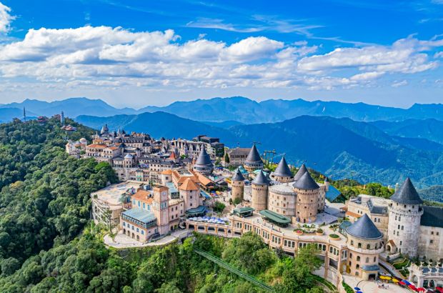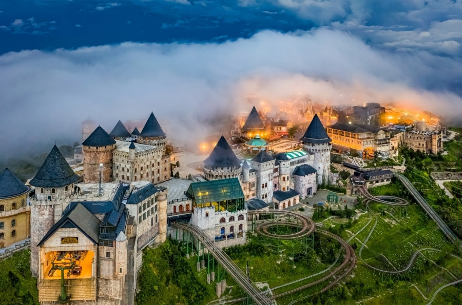 【法國村】 於越南峴港巴拿山山頂,海拔約1400公尺,完整重現19世紀法國殖民時期的歐洲小鎮風貌。村內建築以法式石造城堡、教堂、鐘樓、廣場為主,鵝卵石街道、雕花窗櫺、尖頂屋舍處處散發濃厚歐洲風情。