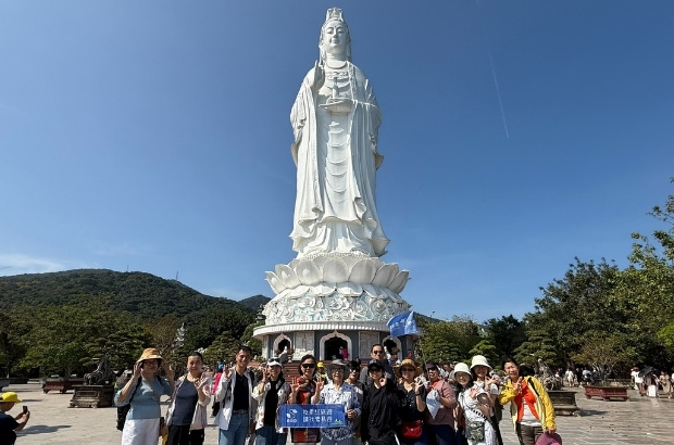 【山茶半島】 於越南峴港市東北方,伸入南中國海,是峴港天然屏障與重要生態保護區,面積約60平方公里。半島森林覆蓋率達90%以上,擁有豐富動植物資源,被列為自然保護區。山頂靈應寺供奉高67公尺的東南亞最高白玉觀音像,俯瞰峴港市區與美溪沙灘全景,視野遼闊壯觀。