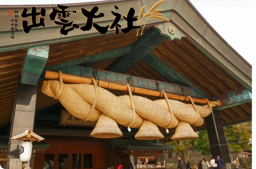 【出雲大社】 是日本最古老的神社之一,祭祀大國主大神,以締結良緣聞名全國。神社採用獨特的「大社造」建築樣式,本殿高24公尺,散發莊嚴神聖氛圍。每年農曆十月,全日本八百萬神明齊聚於此召開「神在月」會議,商議人間姻緣之事,因此成為祈求良緣的聖地。參拜方式特殊,採「二禮四拍手一禮」。