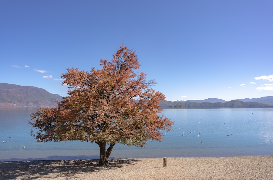 ● 情人沙灘:廣闊的湖面與白色的沙灘相映成趣,水質清澈透亮,傳說是摩梭情侶幽會之地,浪漫氛圍拉滿。