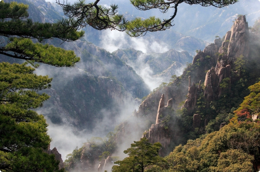 以奇松、怪石、雲海、溫泉聞名於世,被譽為「天下第一奇山」。群峰在雲霧中若隱若現,宛如水墨畫般夢幻。迎客松與壯麗日出更是經典景觀,讓人一生至少要親眼見一次的絕美山景。
