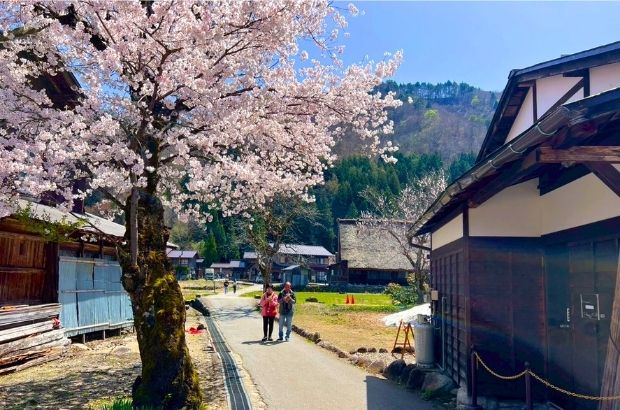 古驛站街與櫻花交織出最懷舊的春日風景。