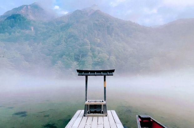 位於上高地的深處,被原始森林環抱的明神池,被視為穗高神社奧宮的聖域。湖水清澈如鏡,倒映著穗高岳與蒼翠林影,靜得能聽見風穿過樹梢的聲音。清晨薄霧瀰漫時,整片湖面如夢似幻,彷彿踏入神明隱居的人間秘境。
