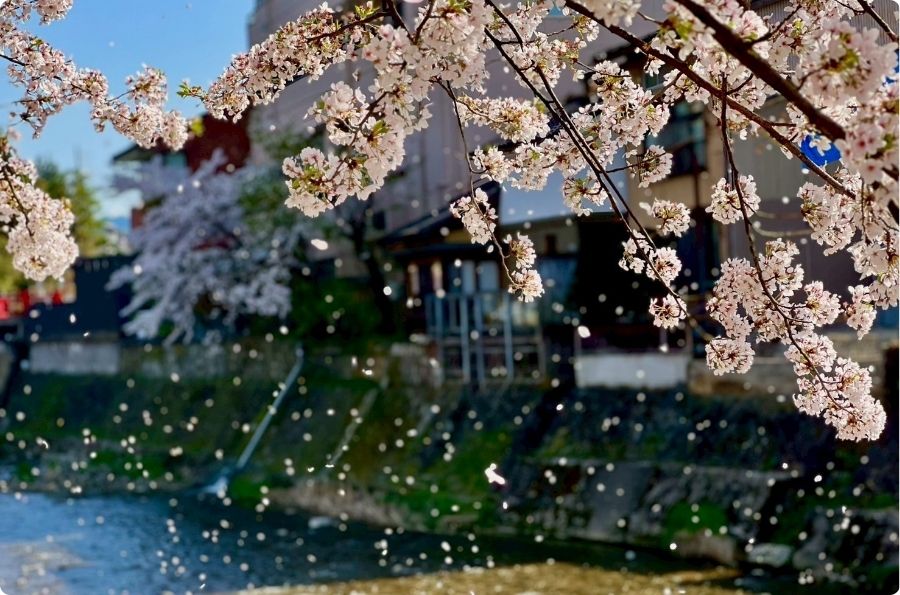 木造町屋、石板小路感受櫻花的柔和光影。