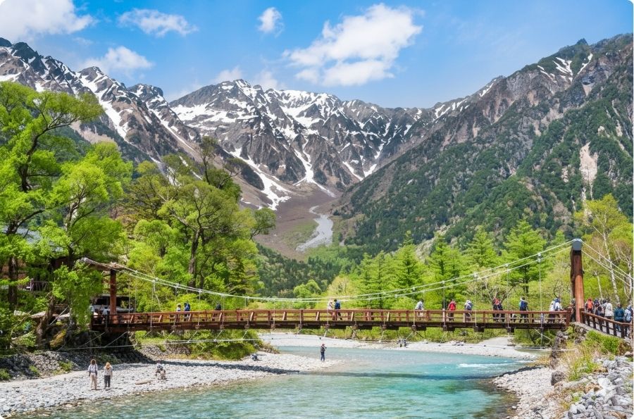 踏入「神的故鄉」,感受日本阿爾卑斯山的神聖美景!被穗高連峰環抱的高原仙境,清澈的梓川倒映著雪峰與藍天,晨霧在林間緩緩升起,如夢似幻。漫步在大自然懷抱中,從河童橋望向燒岳與穗高岳,彷彿走進明信片的世界。四季變幻皆詩意:春新綠、夏繁花、秋楓紅、冬靜雪,無一不令人屏息。