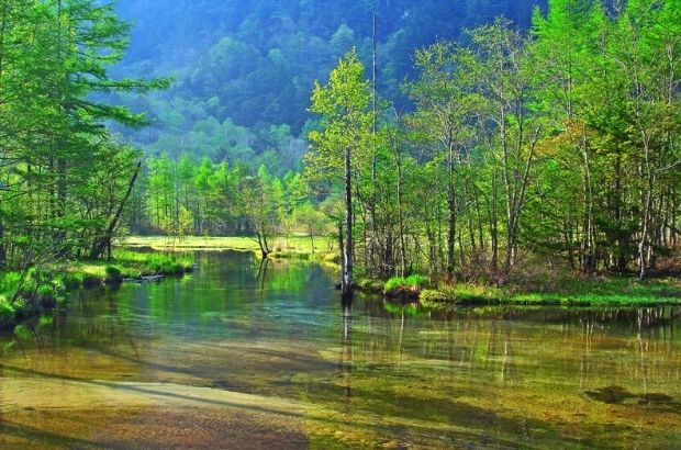 清澈的梓川倒映穗高連峰,四季變幻如畫: